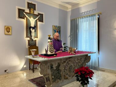 C’è stata la celebrazione dell’Eucaristia nella cappellina dell’Episcopio fi Potenza: dell’Annunciazione parlava la pagina del vangelo del giorno e ad essa si ricollegavano la statuina della Madonna di Loreto, un’icona dell’Annunciazione e un piccolo un piccolo frammento di un muro della Terra Santa.